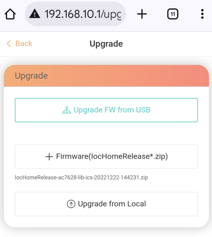 Once uploaded press ‘Upgrade from Local’ and wait for the charger to reboot.