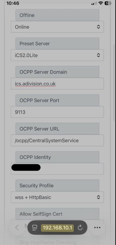 OCPP Server Domain → ics.advision.co.uk